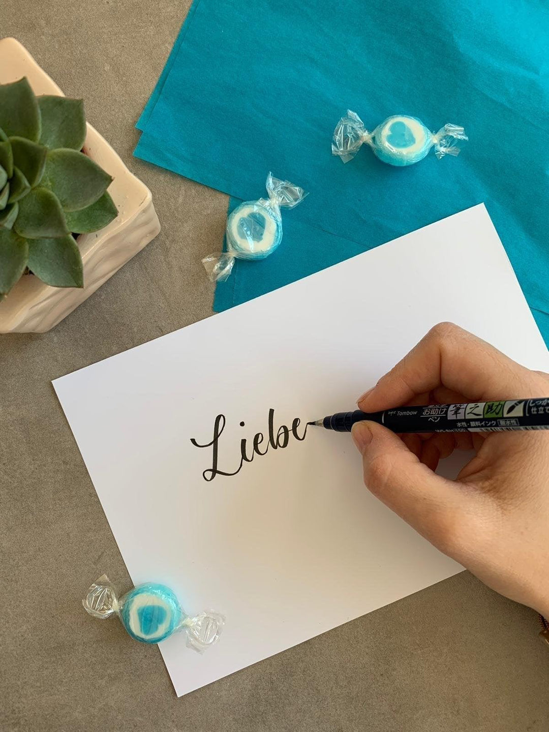 Unser Liebling - der Tombow Fudenosuke mit harter Spitze ist der ideale Brushpen für filigrane Letterings. Die schmale Nylon-Spitze ist robust und trotzdem so flexibel, dass Dir schöne, gleichmäßige Auf- und Abstriche gelingen. Durch die härtere Spitze hast du mehr Kontrolle über die Linien-Führung.