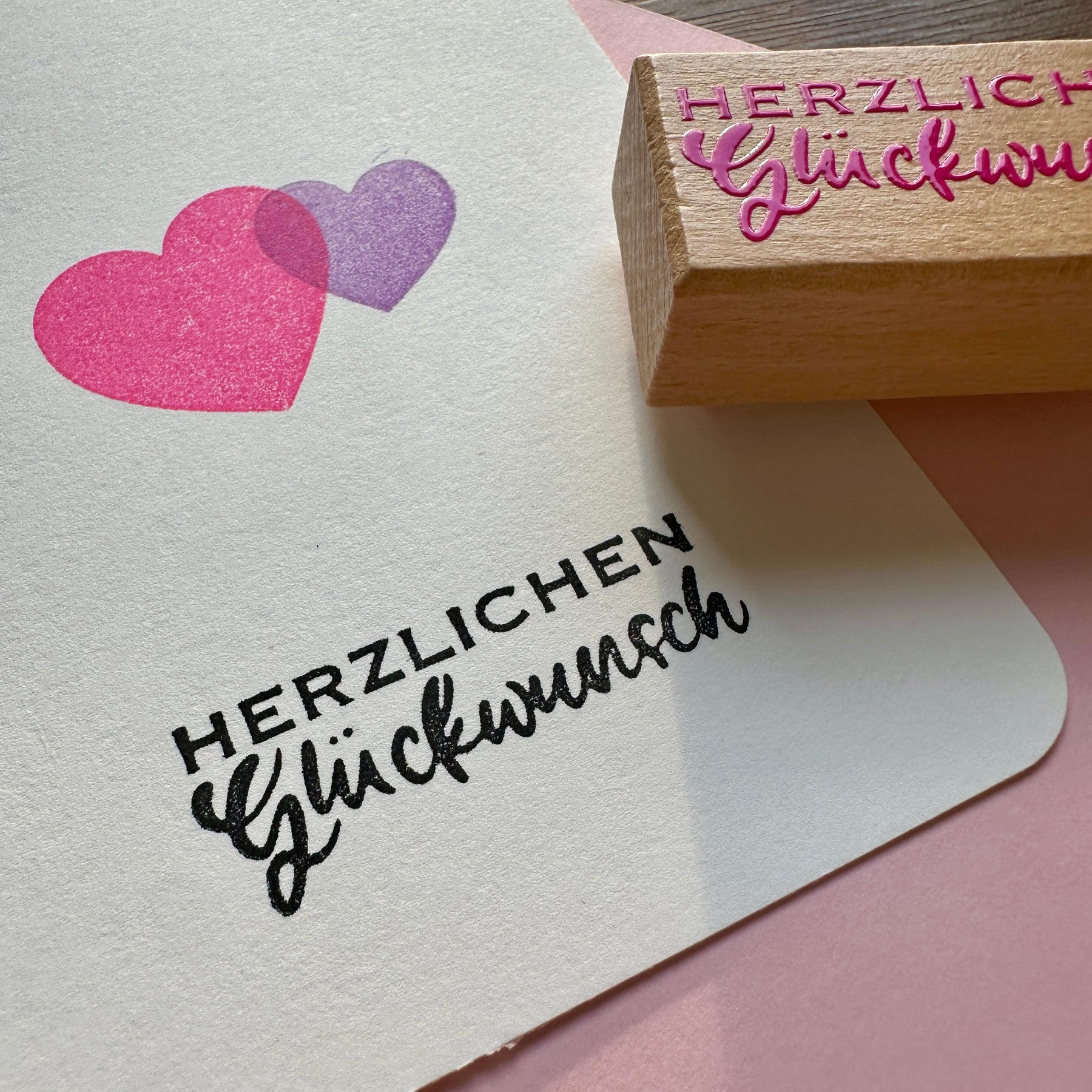 Stempel, die bei uns im Allgäu von uns selbst - mit sehr viel Handarbeit - hergestellt werden. Das "Glückwunsch" wurde von Mia digital gelettert.